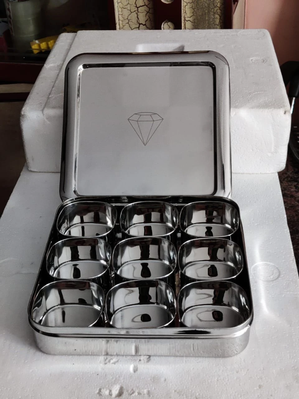 Elegant Design: The Spice Box features a sleek and modern design that complements any kitchen decor. Its compact size fits neatly on your countertop or in your cupboard, saving valuable space while adding a touch of elegance. Durable Construction: Made from high-quality stainless steel, the Spice Box is built to last. Its robust construction ensures that it can withstand daily use without losing its shine or functionality. Convenient Compartments: With seven individual compartments, this spice box allows you to store a variety of spices in one place. Each compartment is easily accessible, making it simple to add the perfect amount of flavor to your dishes. Airtight Seal: The Spice Box comes with an airtight lid that keeps your spices fresh for longer. This feature prevents moisture and air from entering, preserving the aroma and taste of your spices. Specifications: